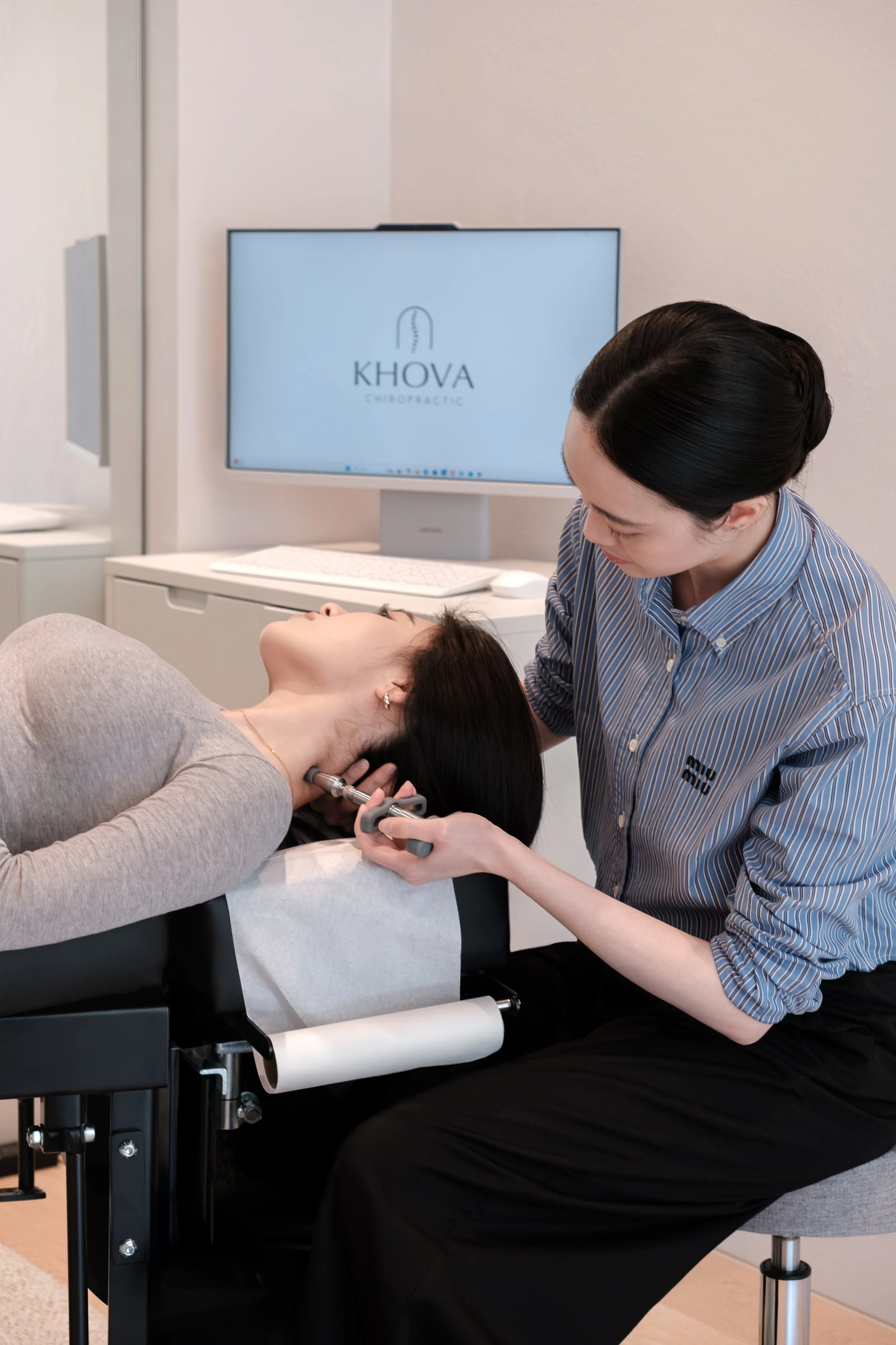 The KHOVA logo features an arch above a spine — a symbol of care and support. It represents my commitment to being a steady presence, and to creating a space where people feel comfortable, supported, and at ease.